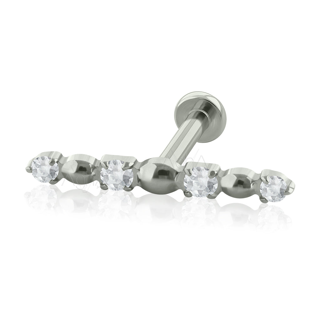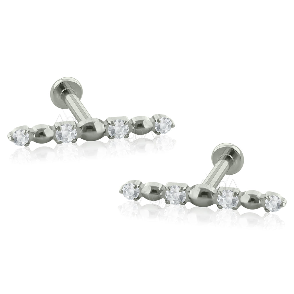 18G Titanio Grado Implante, Accesorio Cluster line Gem, Prong Setting con Cristales Zirconia, Perforación en el Lóbulo y Cartílago.