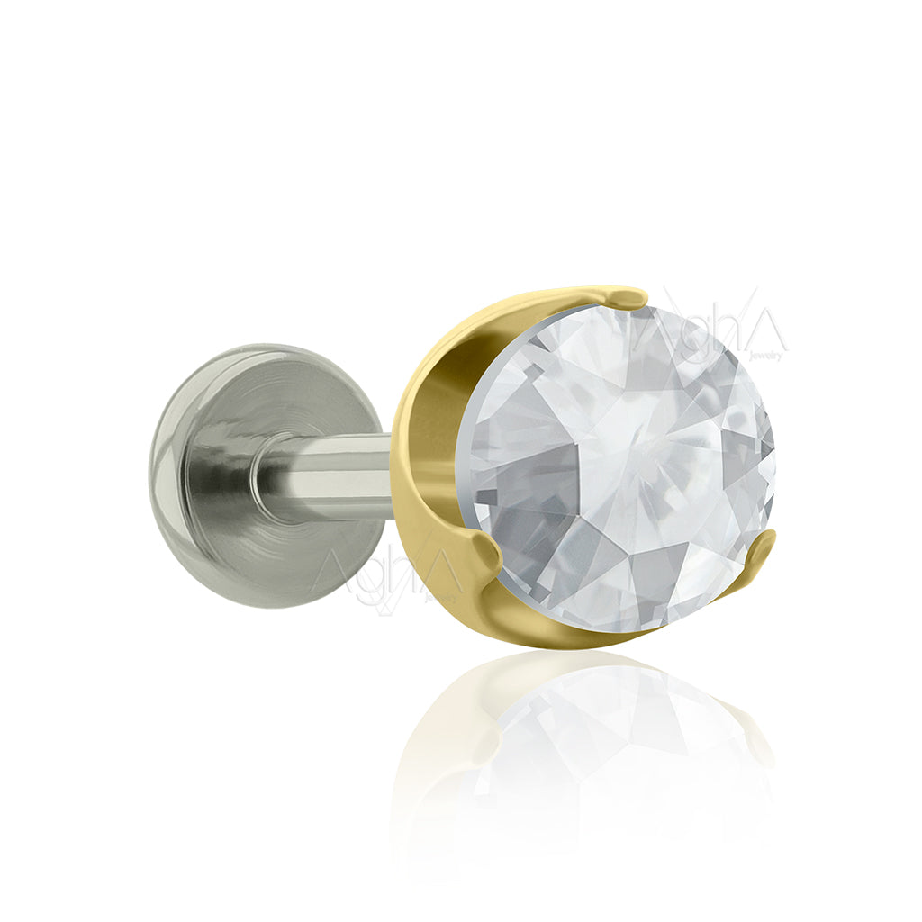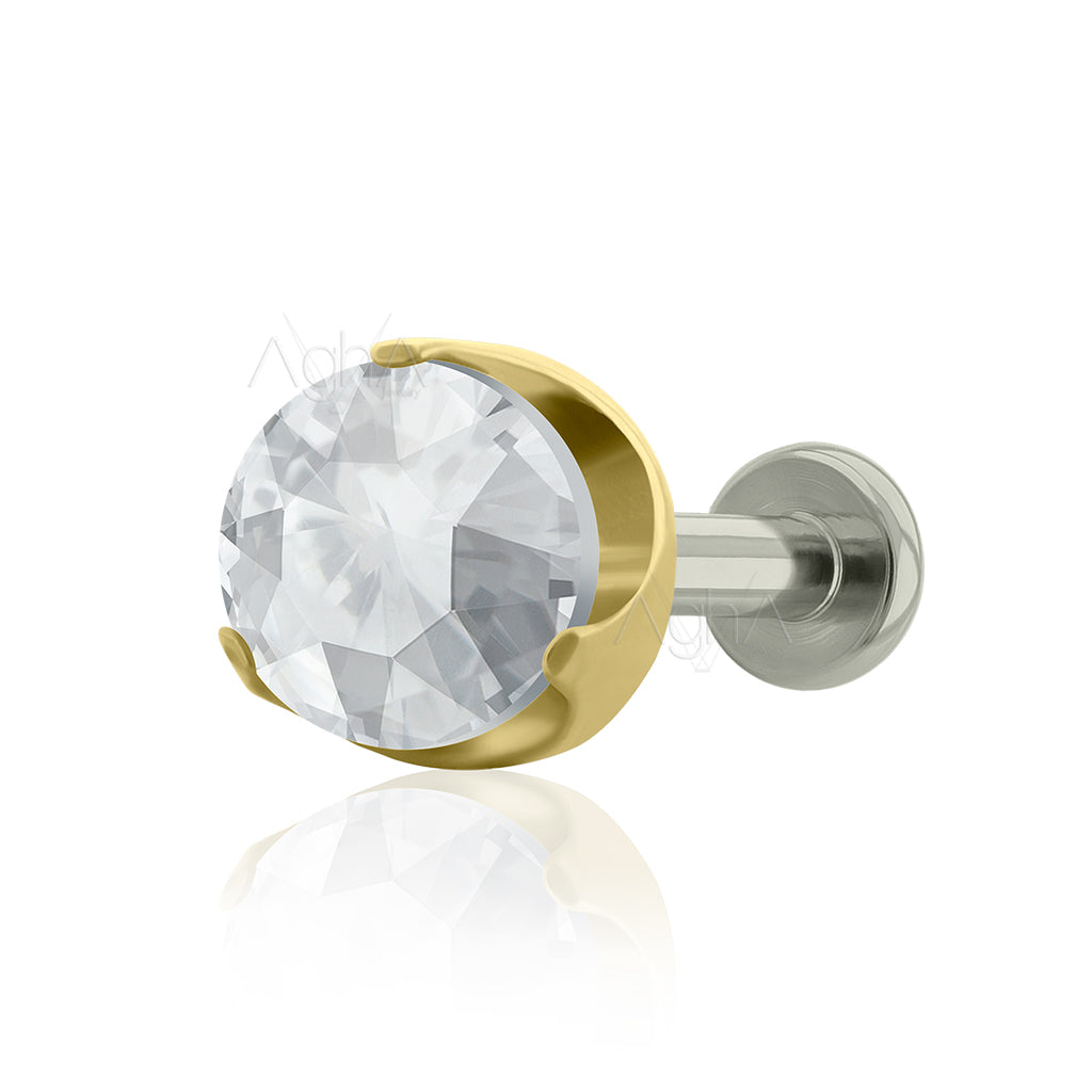 Arete de Titanio Grado Implante, Accesorio con agarre Prong Setting Completo de Cristales Zirconia con Rosca Interna y Barra tipo labret con grosor 1.0mm (calibre 18).