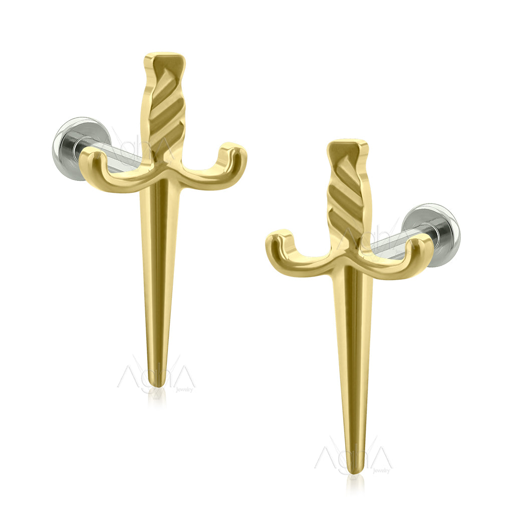 18G Titanio Platizado Dorado Grado Implante, Accesorio Gran Espada, Perforación en el Lobulo y Cartílago.
