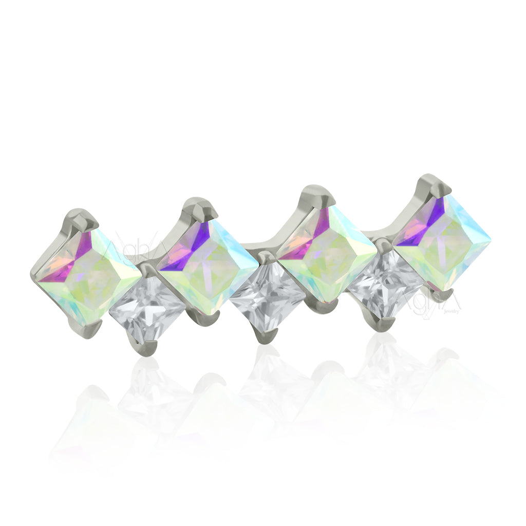 18g- 16g Accesorio Especial Cluster, Prong Setting con Cristales Zirconia de Titanio Grado Implante Rosca Interna (solo el accesorio)// Perforación de Lóbulos, Orejas