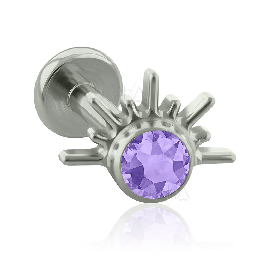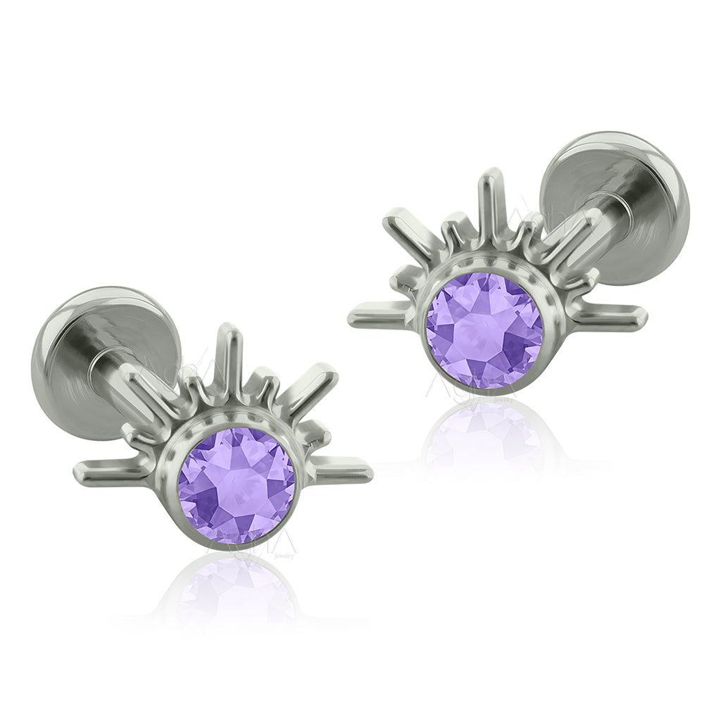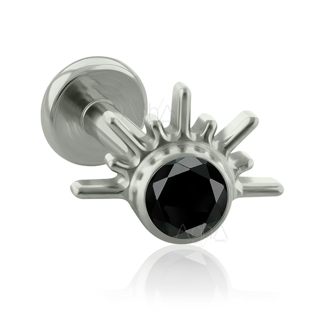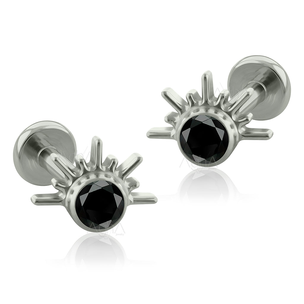 16G Titanio Grado Implante, Accesorio Aztec Pluma Bezel Setting con Cristales Zirconia, Perforación en el Lóbulo y Cartílago.