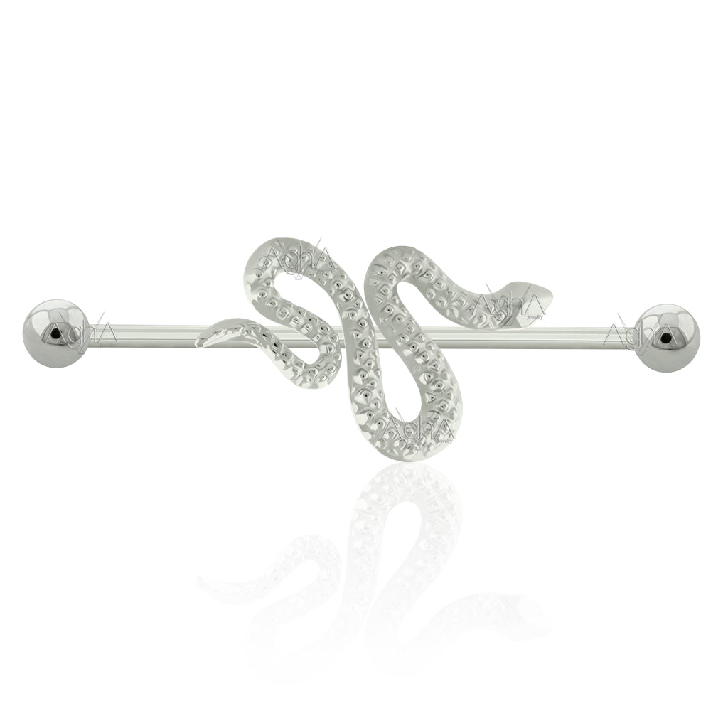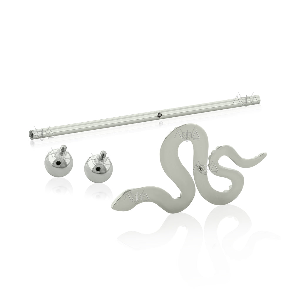 14g Industrial Titanio Grado Implante Rosca Interna con Accesorios Bola y en frente con accesorio de Serpiente 0.9mm Patrón de rosca.