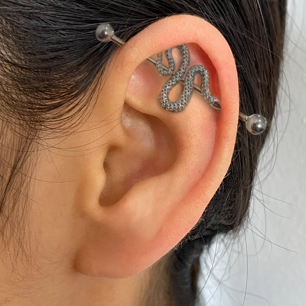 14g Industrial Titanio Grado Implante Rosca Interna con Accesorios Bola y en frente Serpiente // Perforación para Cartílago, Industrial Piercing