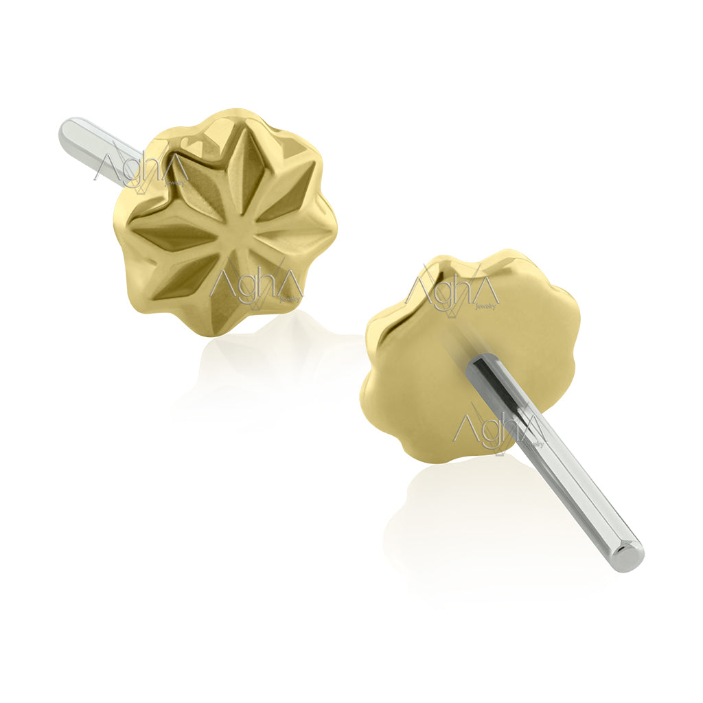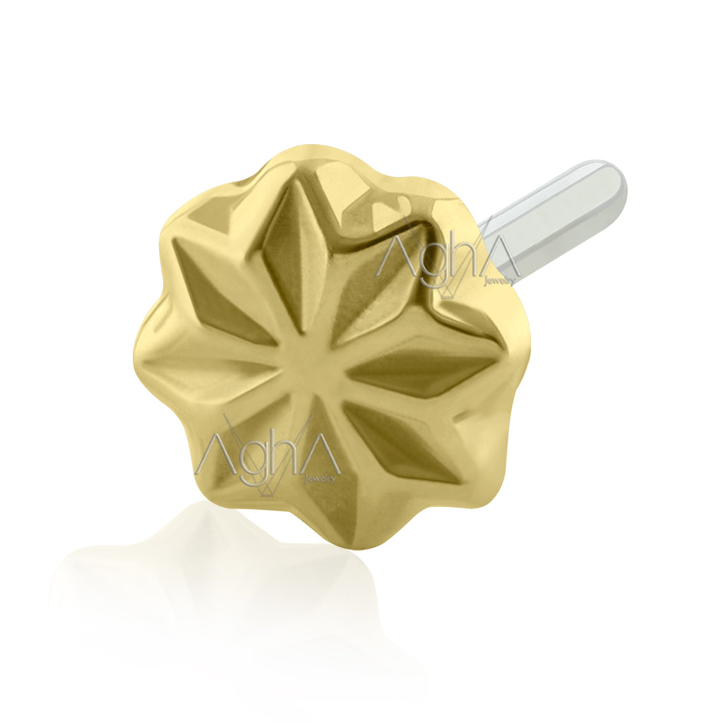 14k Oro Solido Amarillo Accesorio Glow Star End Pin a Presión, Oro libre de Níquel, Perforación en el Lóbulo y Cartílago