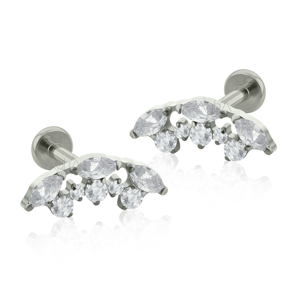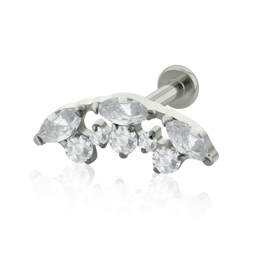 16G Titanio Grado Implante , Accesorio Curved multijewelry, Prong Setting con Cristales Zirconia, Perforación en el Lóbulo y Cartílago.