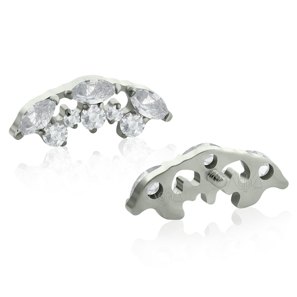 16G, Accesorio Curved multijewelry, con agarre Prong Setting de Cristales Zirconia, con Rosca Interna y Barra tipo labret con grosor 1.2mm (calibre 16).