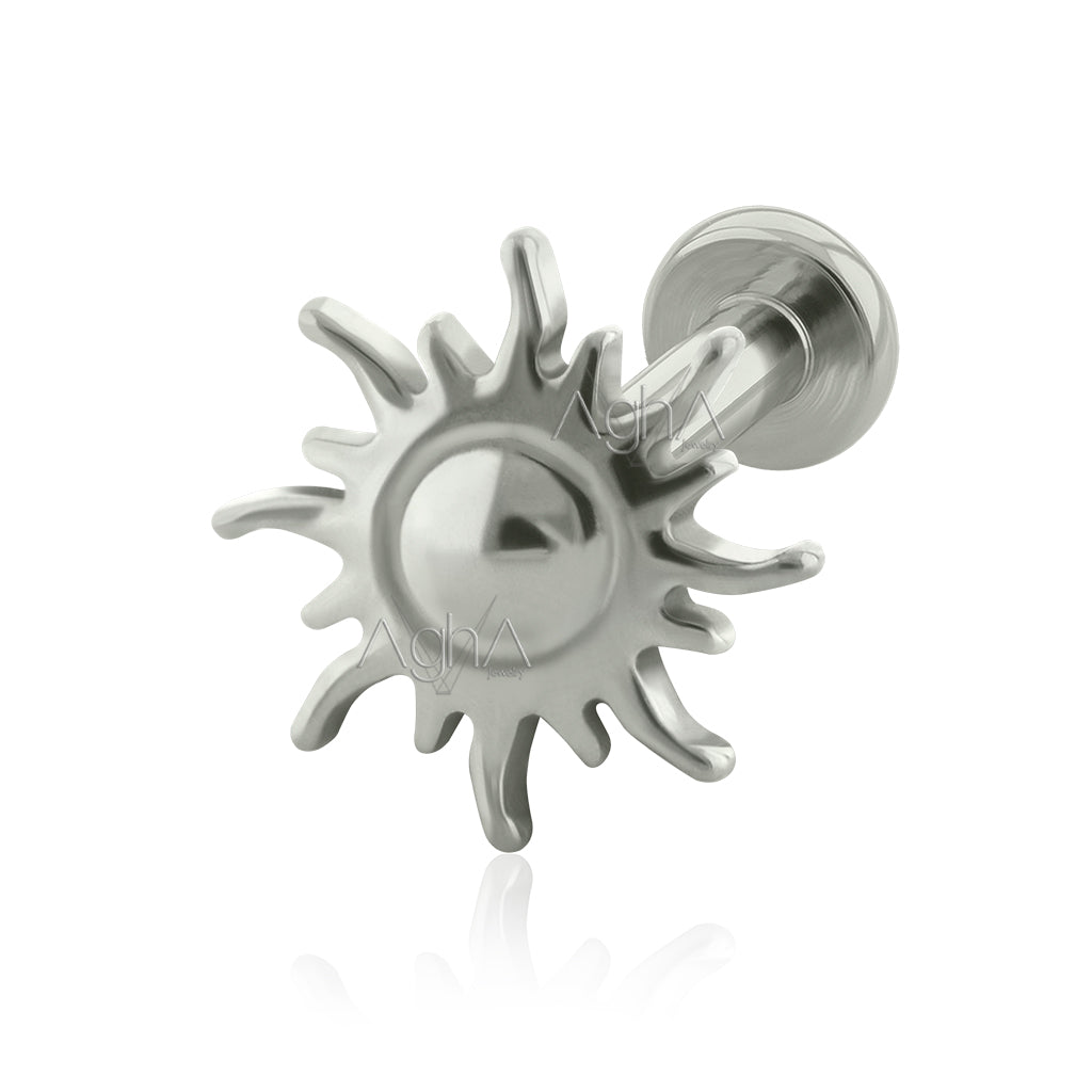 Arete de Titanio Grado Implante, Accesorio Radiant Sun con Rosca Interna y Barra tipo labret con grosor 1.2mm (calibre 16).