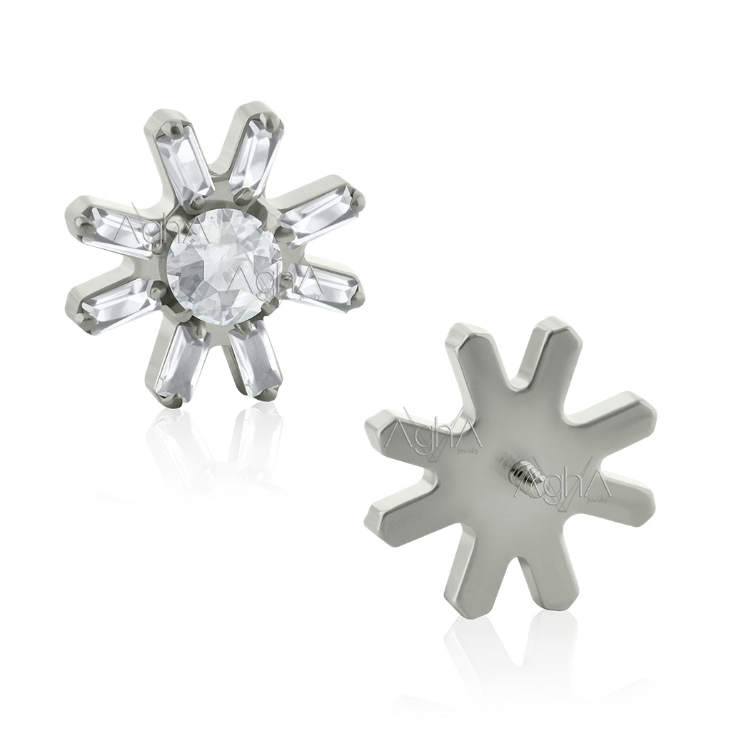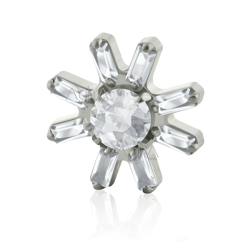 18g-16g Accesorio Sunflare Prong Setting con Cristales Zirconia y Titanio Grado Implante Rosca Interna (solo el accesorio)// Perforación de Lóbulos, Orejas