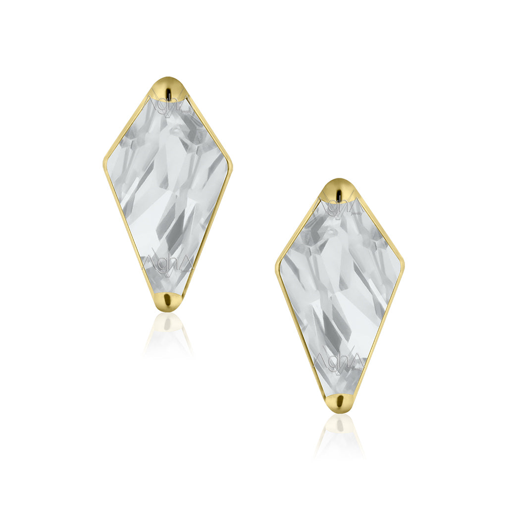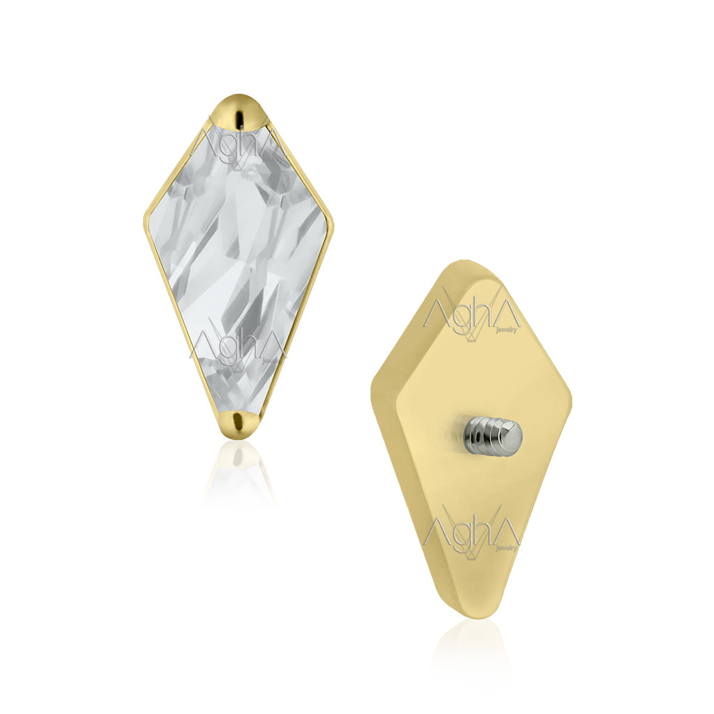18g- 16g Titanio Platizado Dorado, Accesorio Rhombus Prong Setting con Cristales Zirconia y Titanio Grado Implante Rosca Interna (solo el accesorio)// Perforación de Lóbulos, Orejas