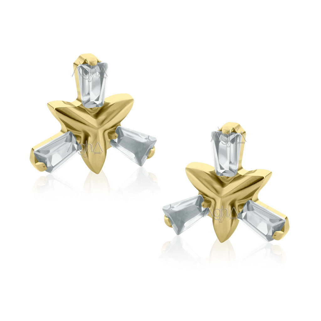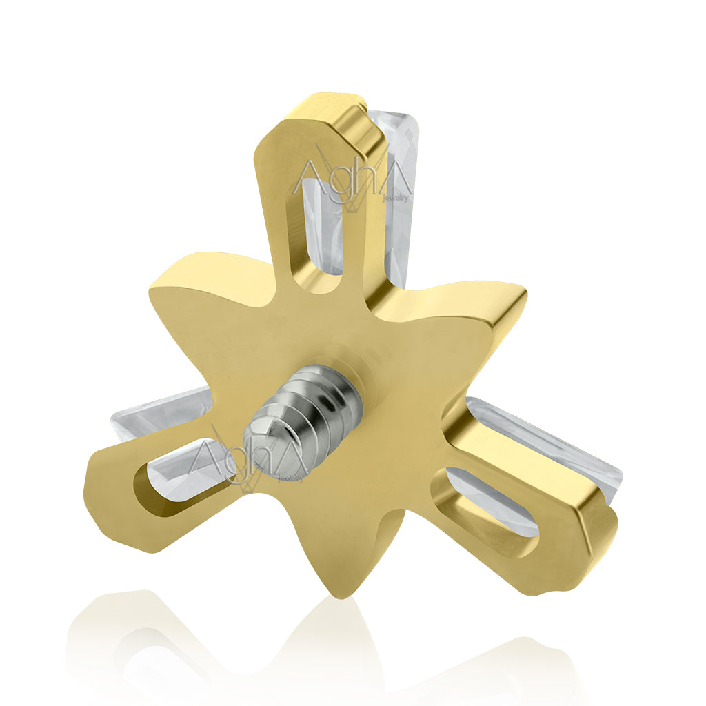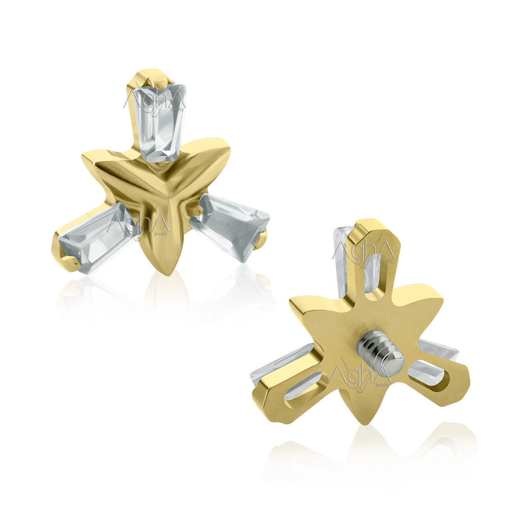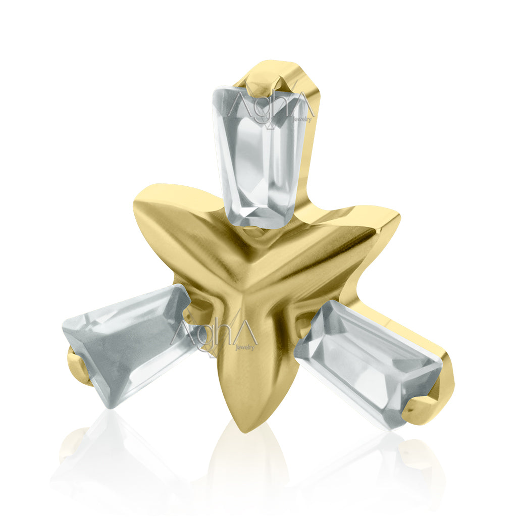 18g- 16g Titanio Platizado Dorado, Accesorio Special Trinity Baguette Prong Setting con Cristales Zirconia y Titanio Grado Implante Rosca Interna (solo el accesorio)// Perforación de Lóbulos, Orejas
