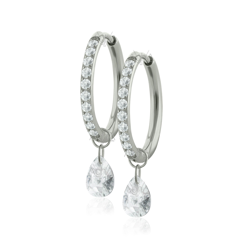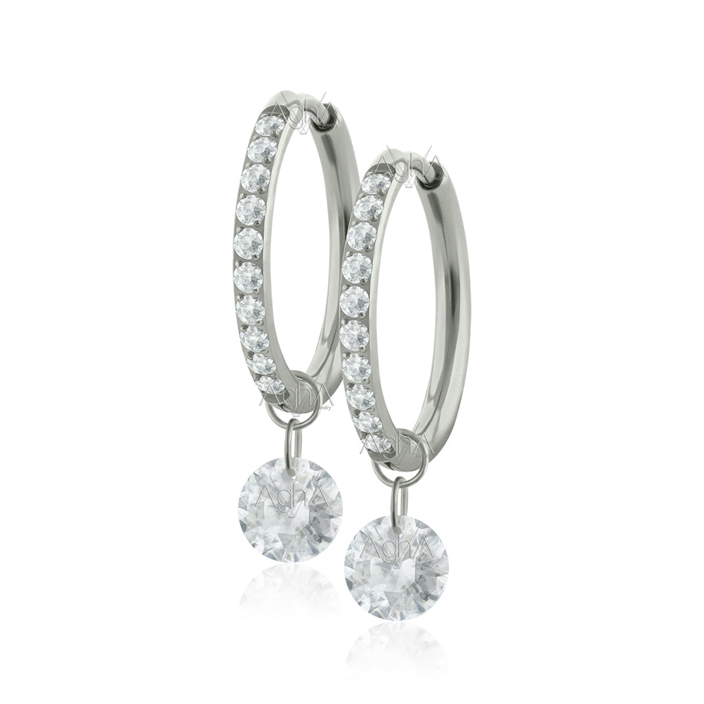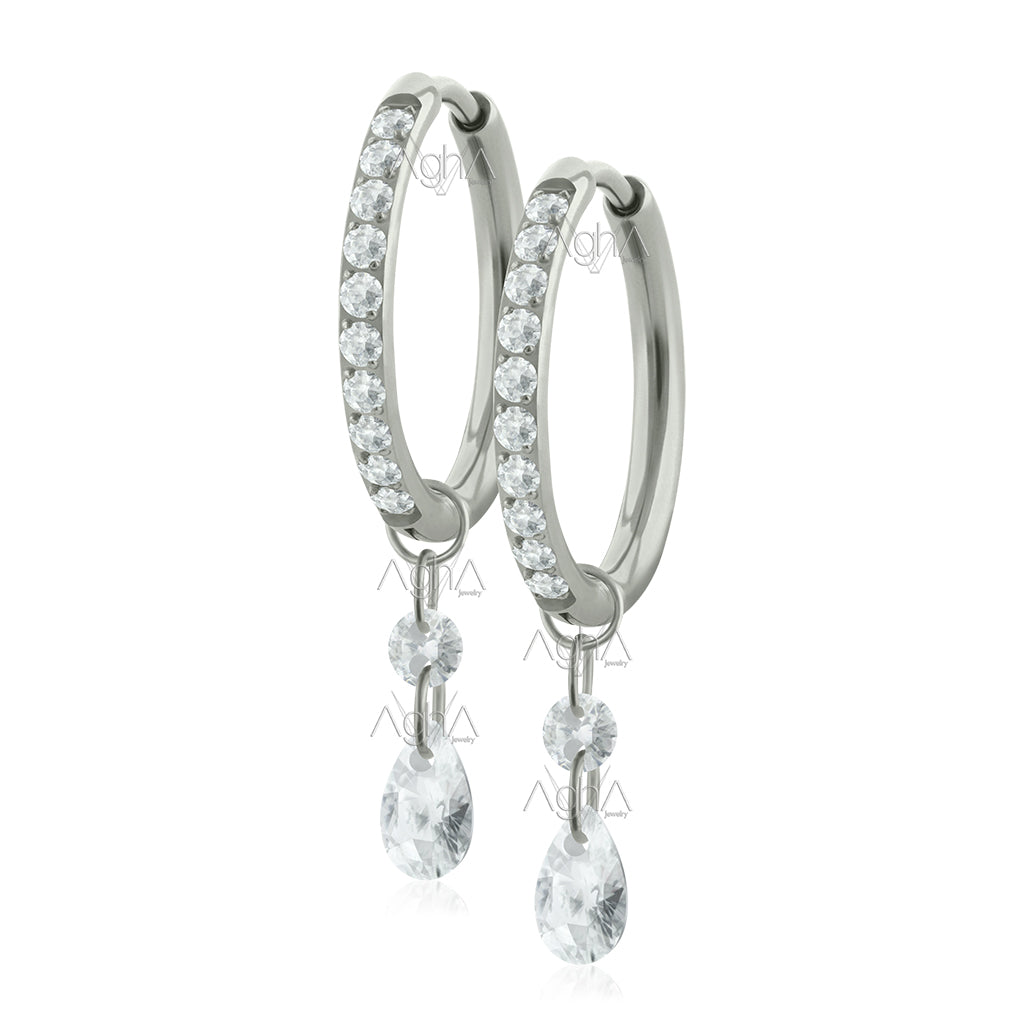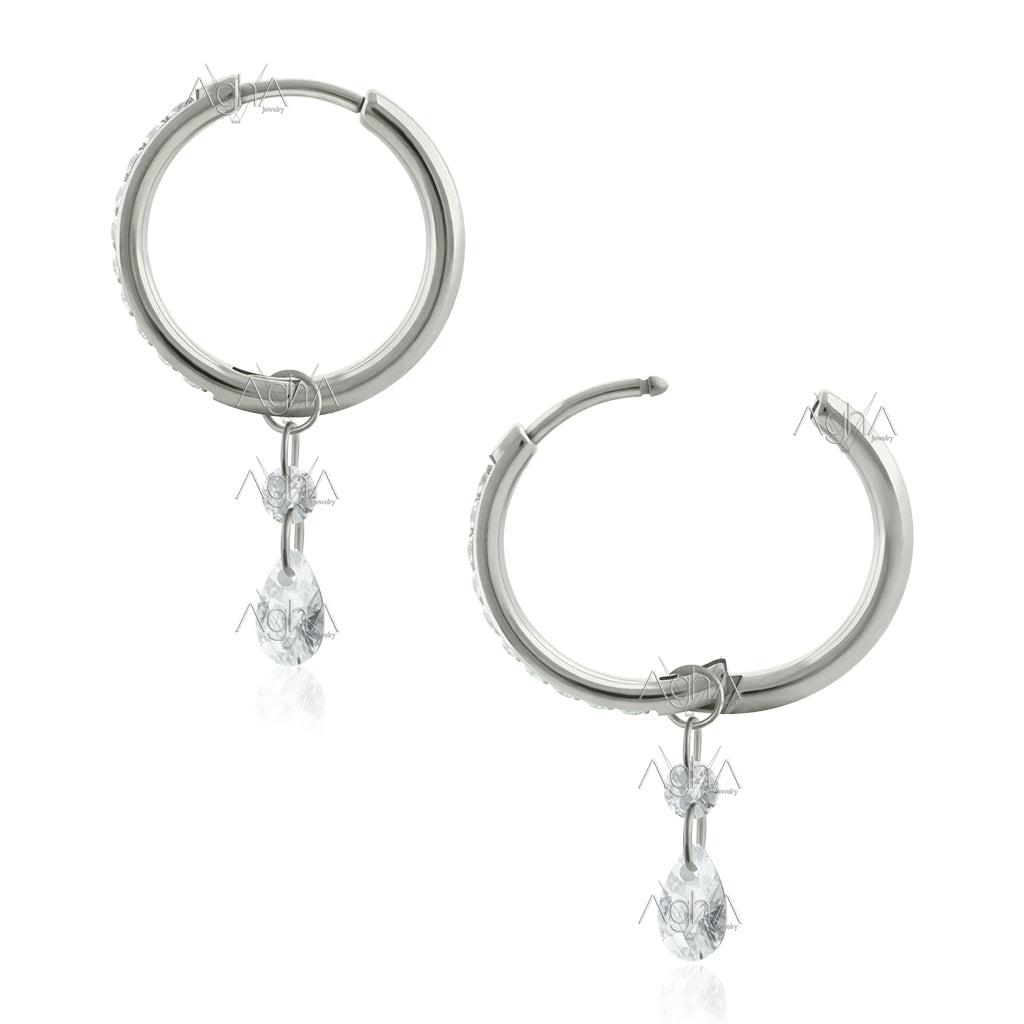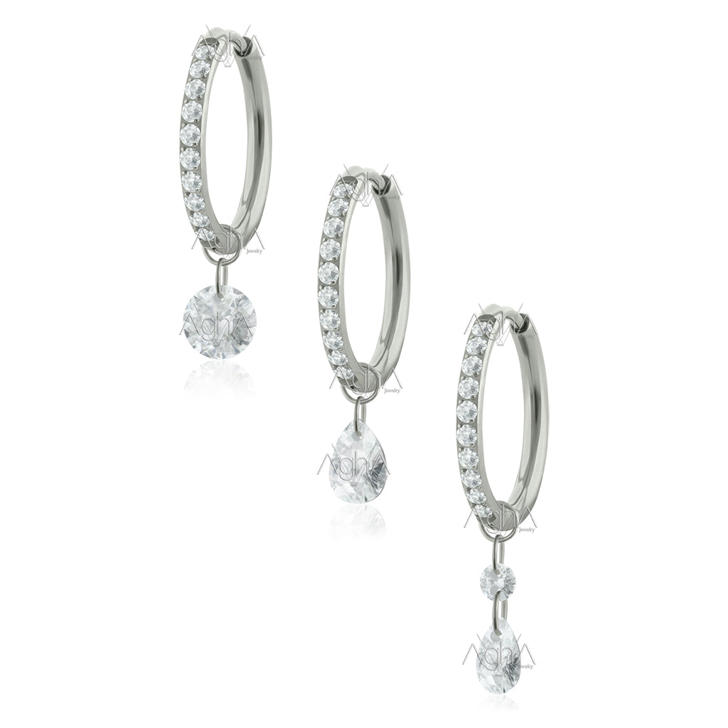 18G Par Candongas con Cristales Zirconias de Lado de Titanio Grado Implante con Accesorios Dangle