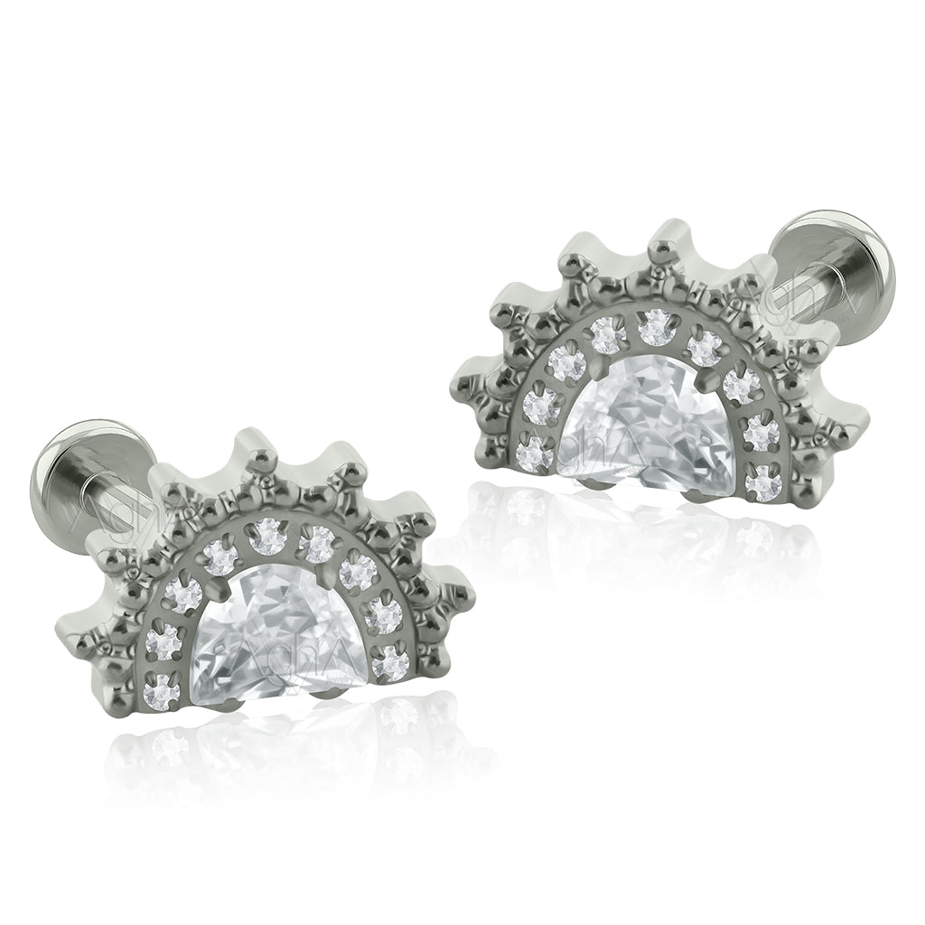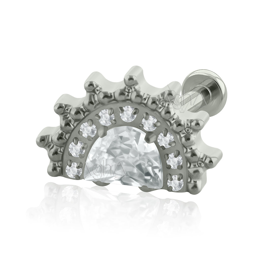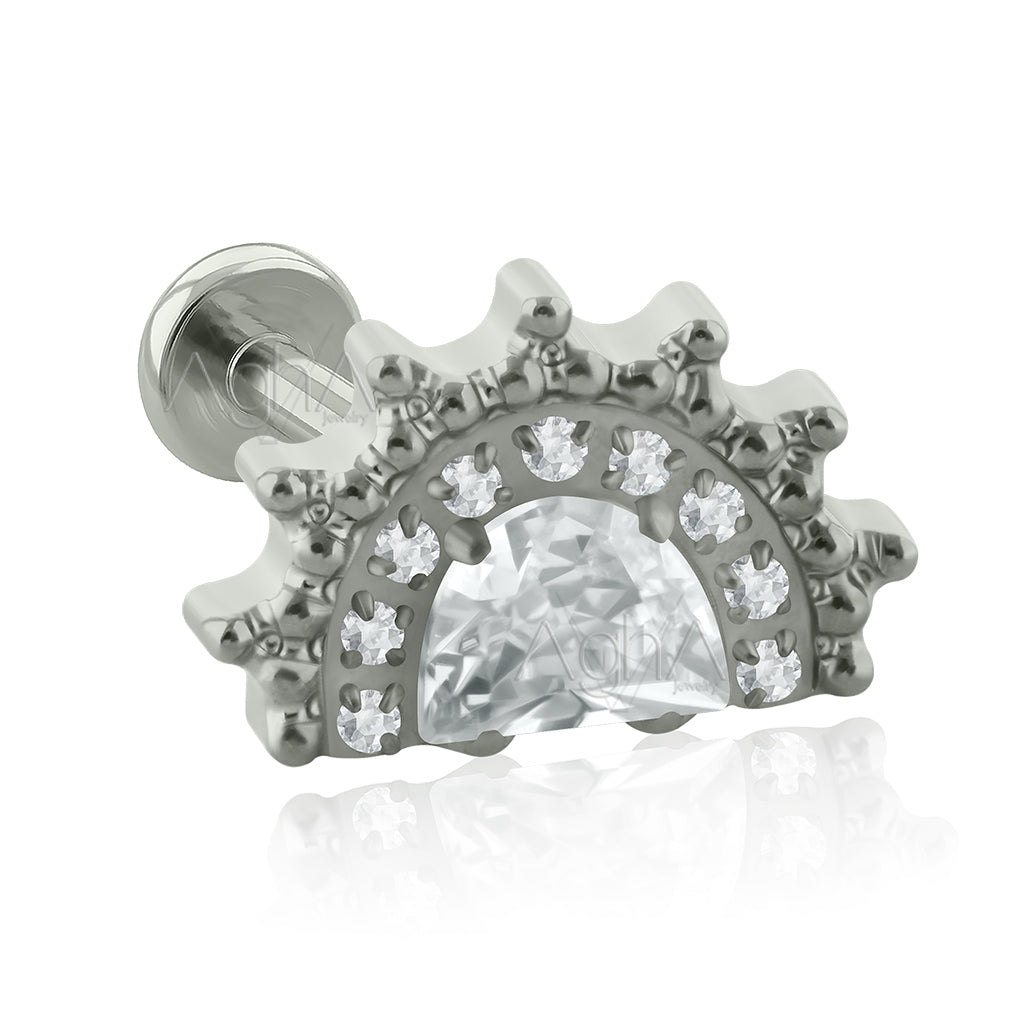 Arete de Titanio Grado Implante, Accesorio D Aztec con agarre Prong Setting de Cristales Zirconia, con Rosca Interna y Barra tipo labret con grosor 1.0mm (calibre 18).