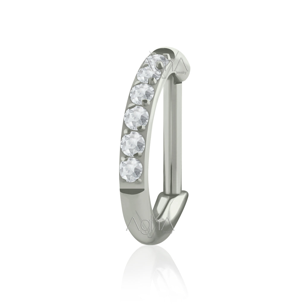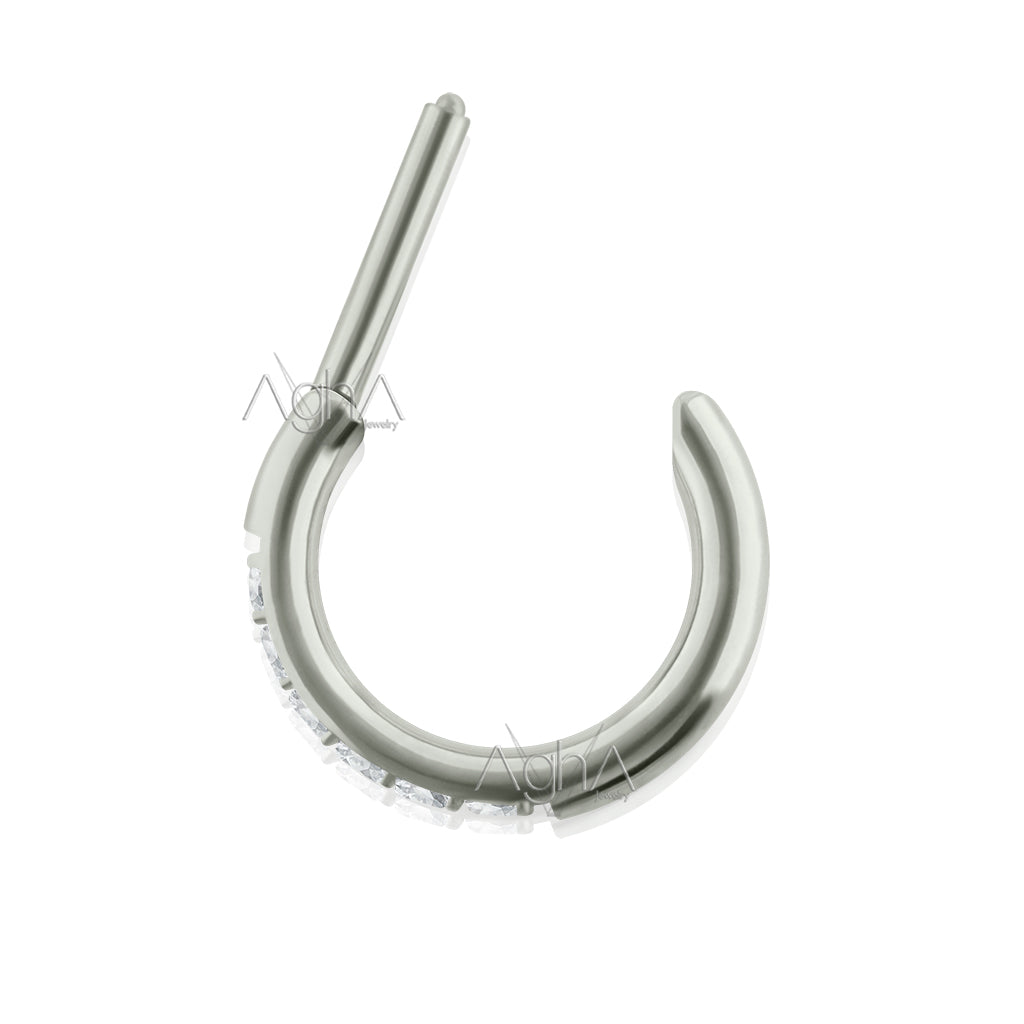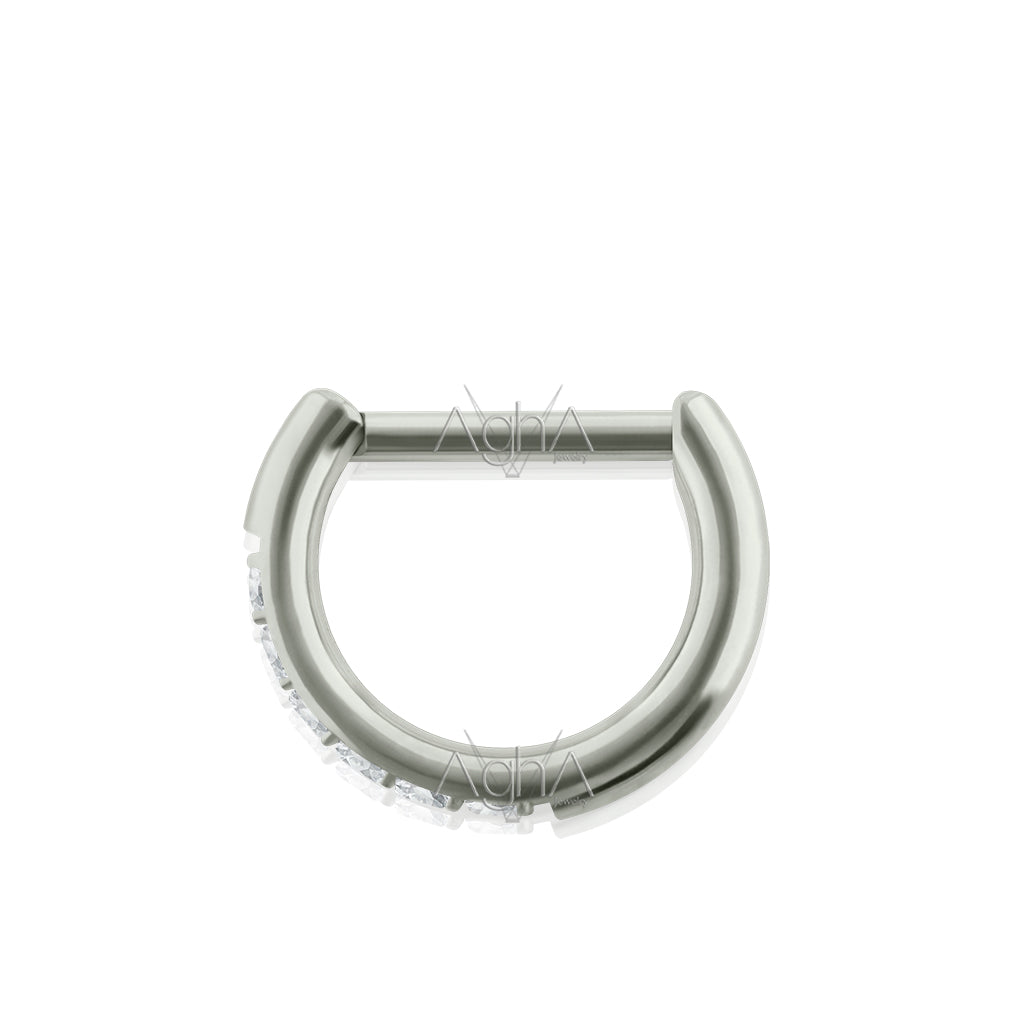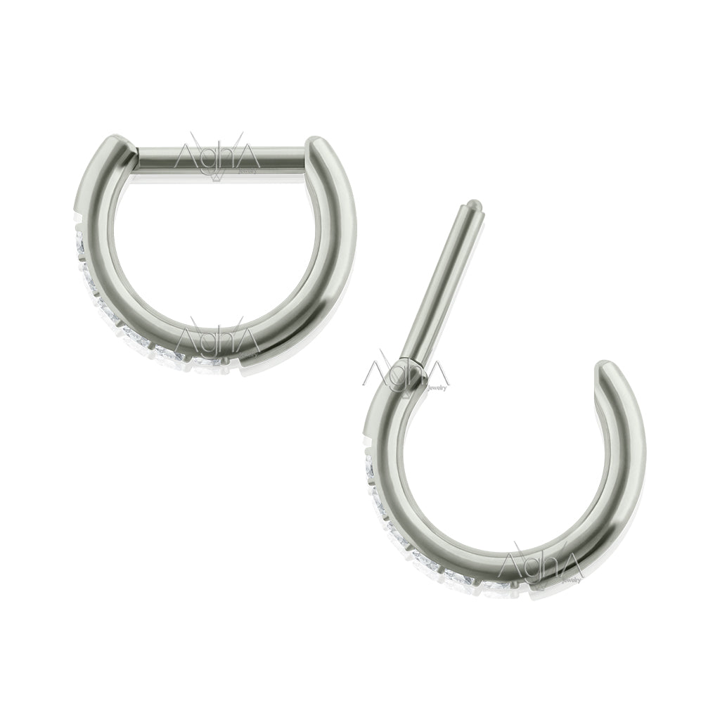 20G Titanio Grado Implante Aro con Bisagra en forma D con Cristales Zirconias de Lado. // Septum, Cartílago y Lóbulo Piercing