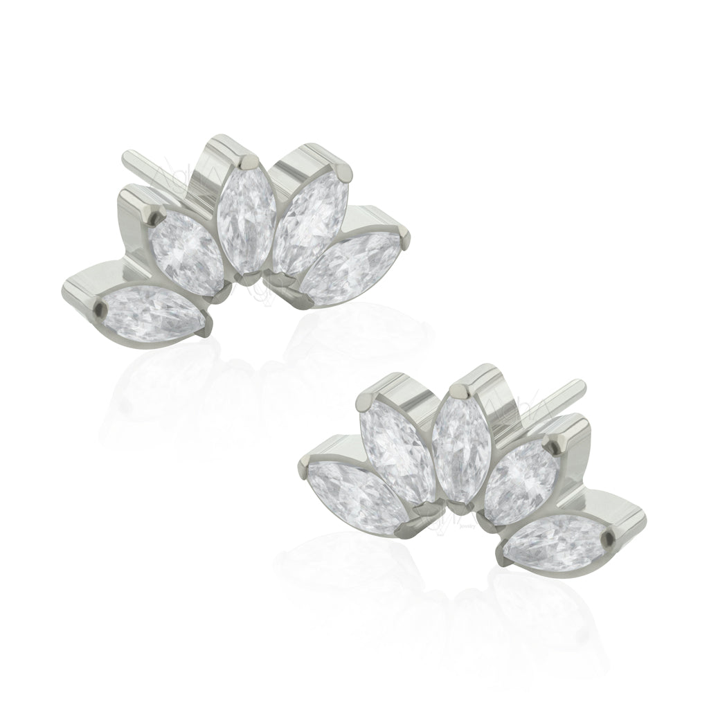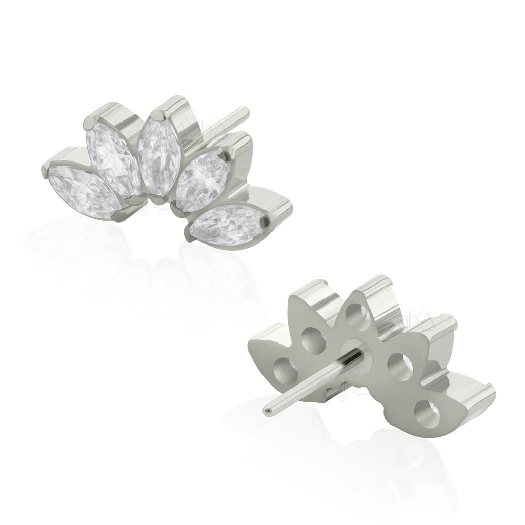 Accesorio Arch Maquise Zircon Prong Setting con Cristales Zirconia y Titanio Grado Implante Pin a Presión (solo el accesorio) // Perforación de Lóbulos, Cartílagos, Ombligo, Boca y Nariz
