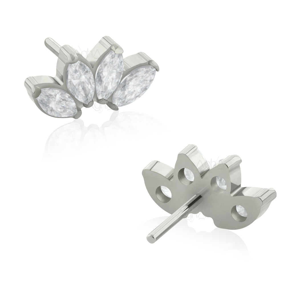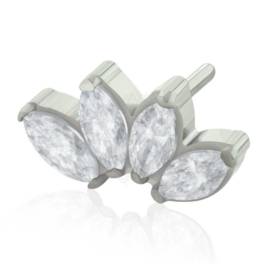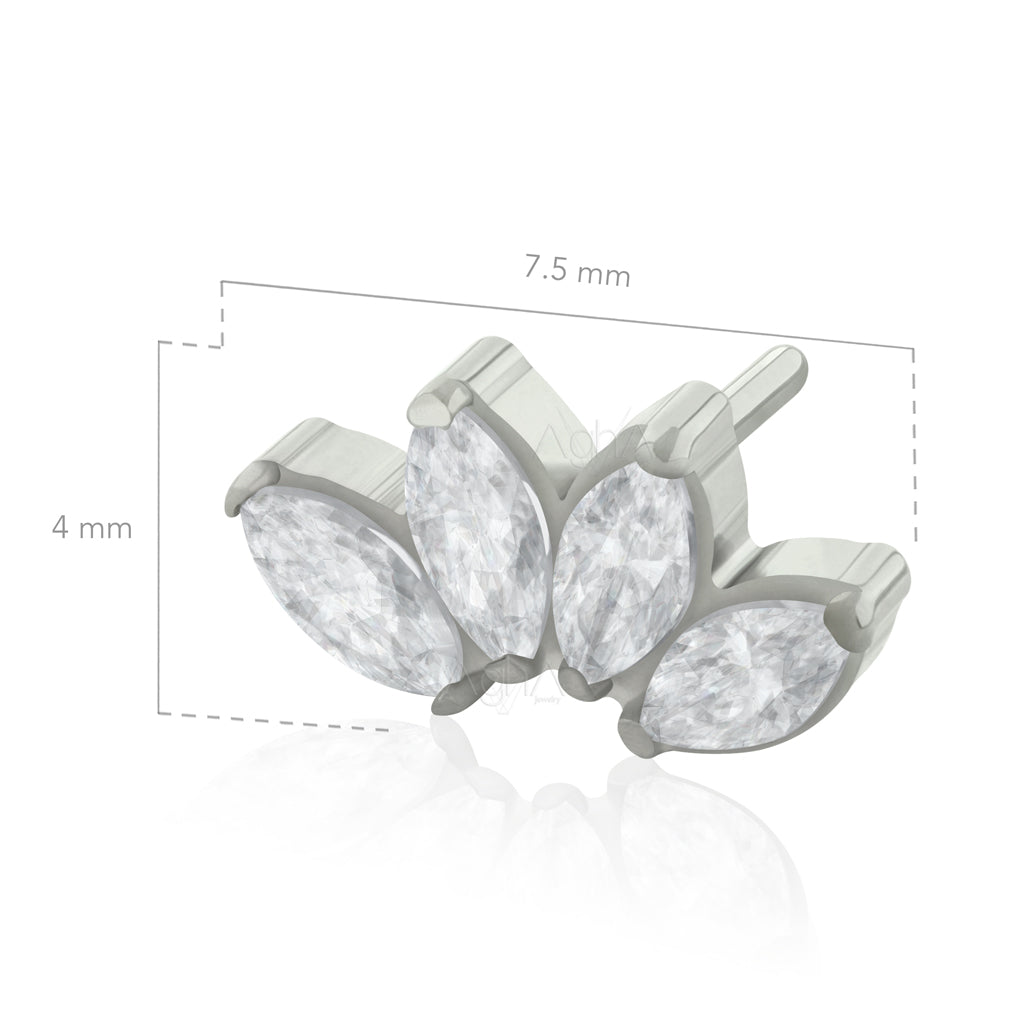 Accesorio Quad Maquise Zircon con Cristales Zirconia y Titanio Grado Implante Pin a Presión (solo el accesorio) // Perforación de Lóbulos, Cartílagos, Ombligo, Boca y Nariz