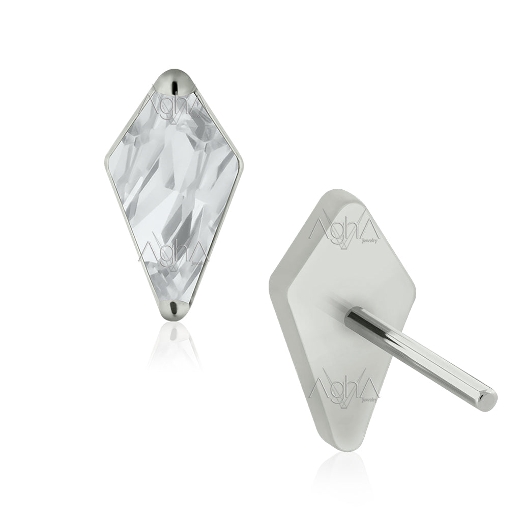 Accesorio Rhombus, Prong set, Cubic Zirconia y Titanio Grado Implante Pin a Presión (solo el accesorio) // Perforación de Lóbulos, Cartílagos, Ombligo, Boca y Nariz