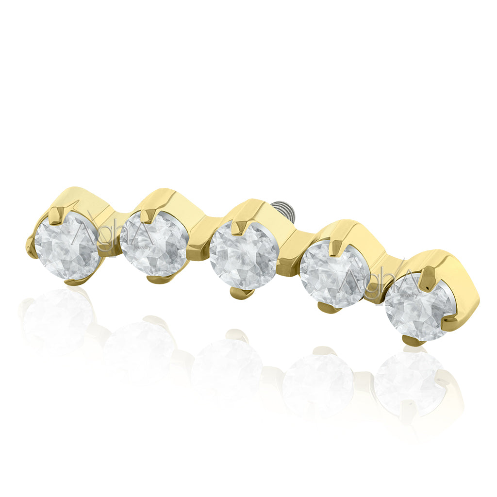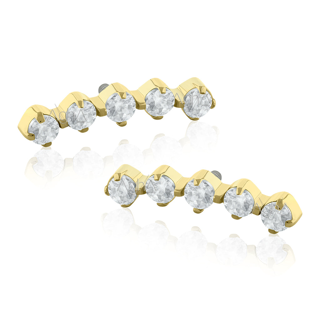 18g-16g Accesorio Crecent Cluster, Prong Setting con Cristales Zirconia y Titanio Platizado Dorado Grado Implante Rosca Interna (solo el accesorio)// Perforación de Lóbulos, Orejas
