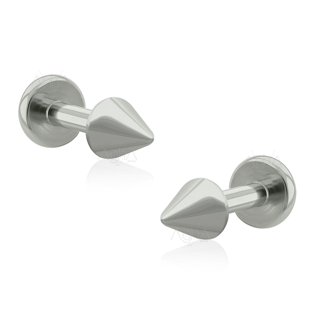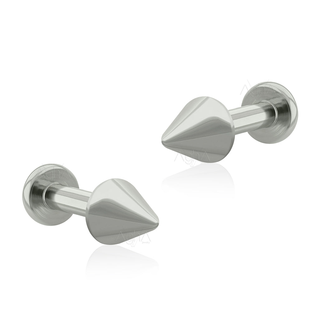 Arete de Titanio Grado Implante, Accesorio Spike con Rosca Interna y Barra tipo labret con grosor 1.6mm (calibre 14).