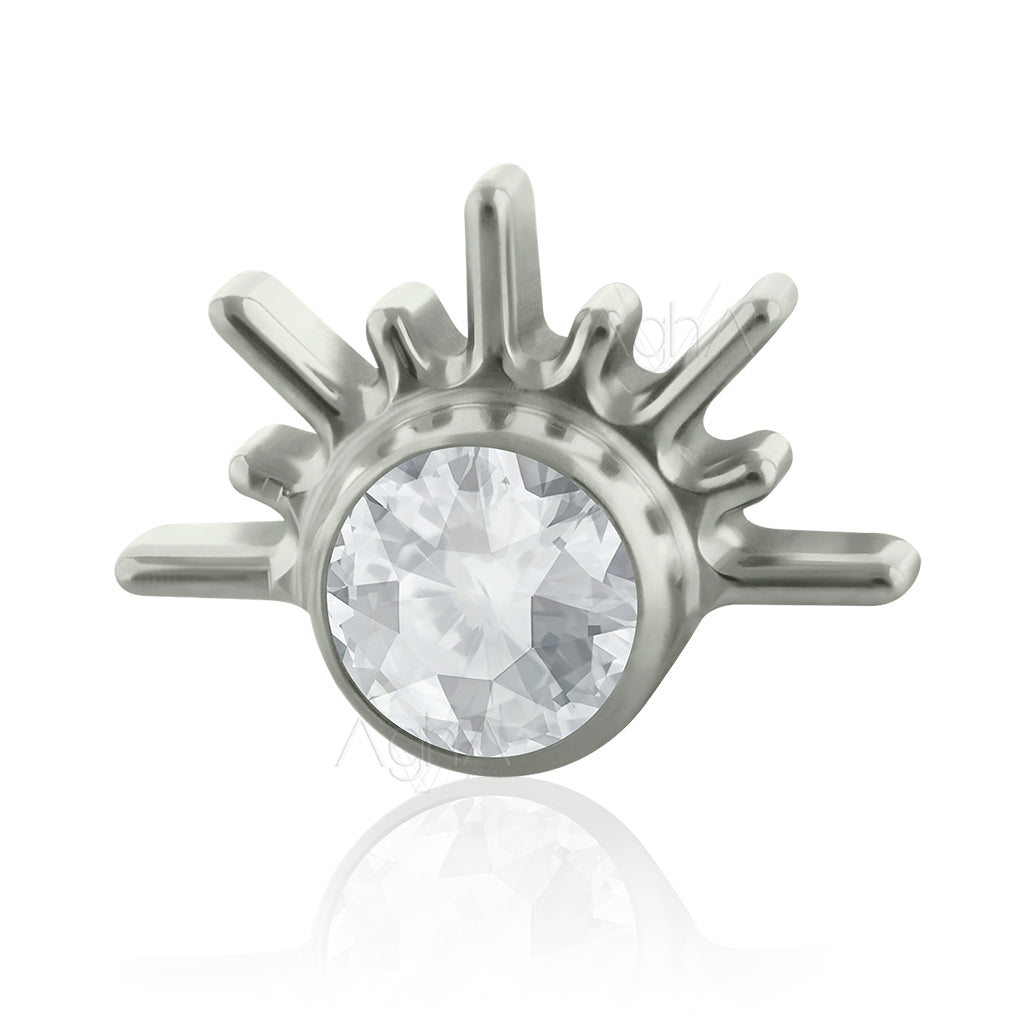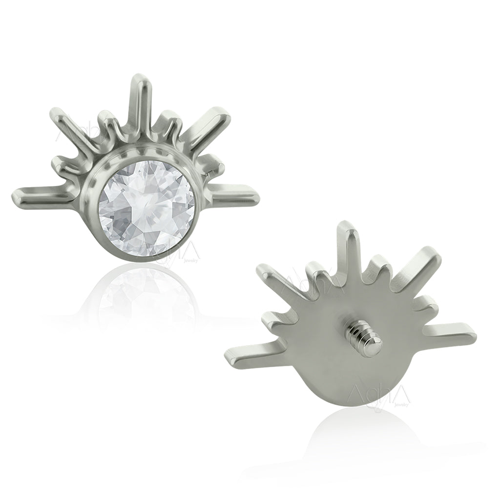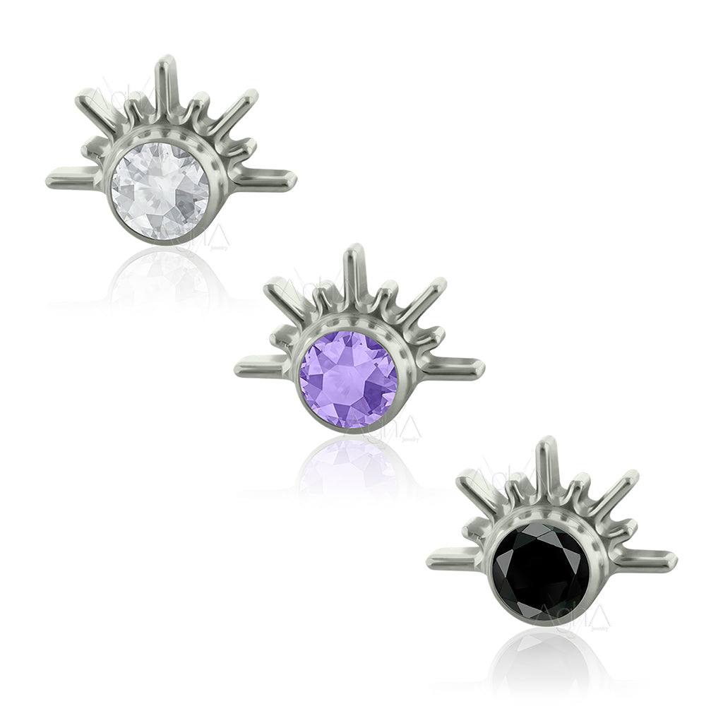 18g-16g Accesorio Aztec Pluma Bezel Setting con Cristales Zirconia y Titanio Grado Implante Rosca Interna (solo el accesorio)// Perforación de Lóbulos, Orejas